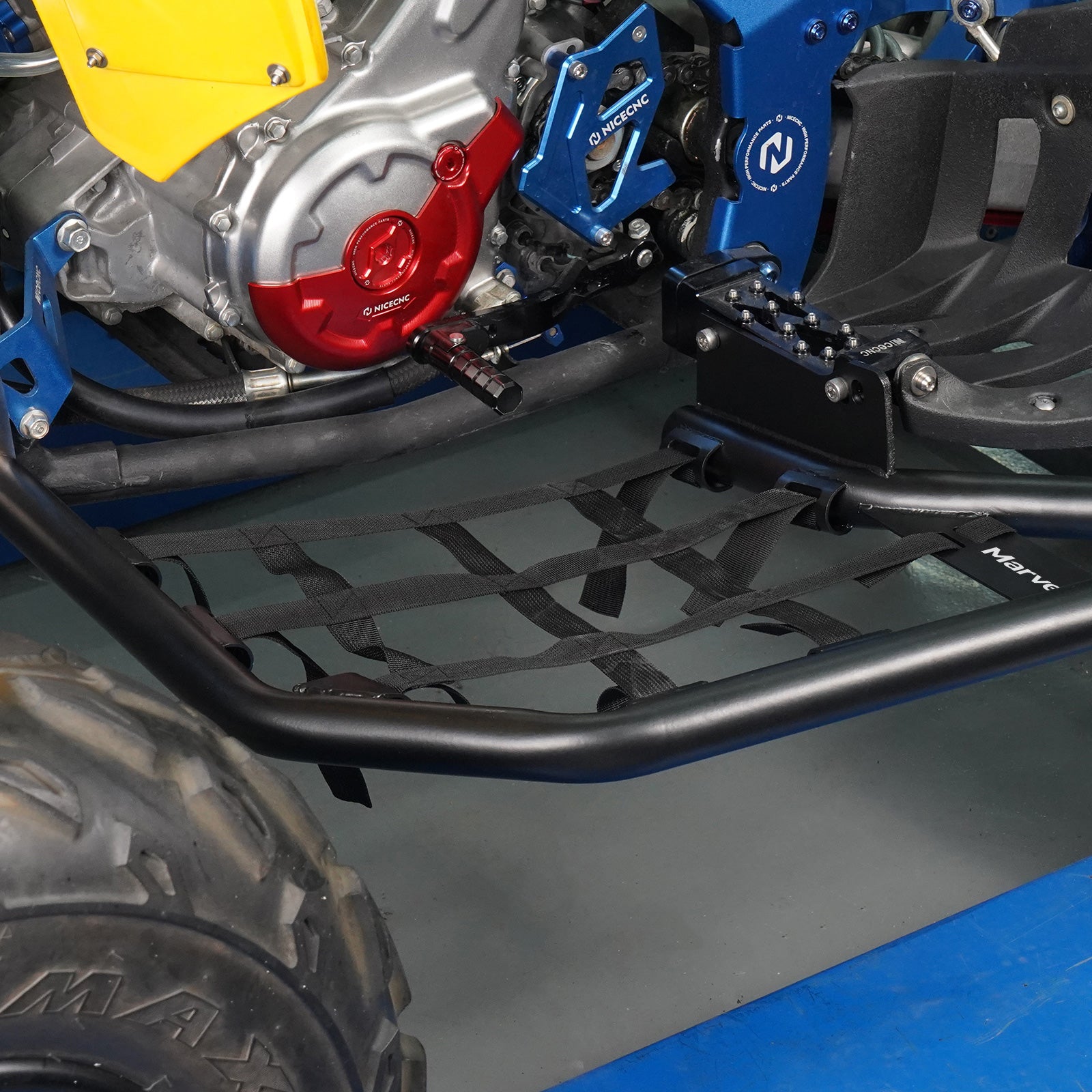MARVEWAY Pair ATV Nerf Bars Peg Heel Guards Netted Protection For Yamaha Raptor 700 06-24